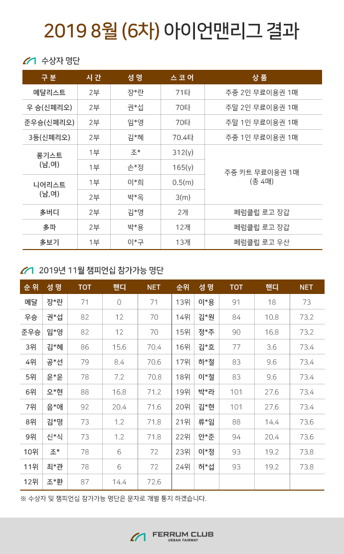 | Á¦ ¸ñ | 2019³â 08¿ù (6Â÷) ¾ÆÀ̾ð¸Ç¸®±× °á°ú | ||