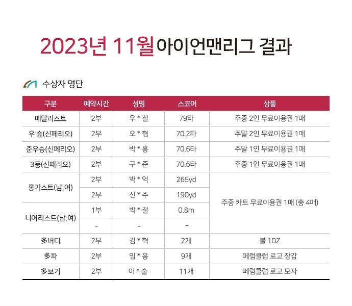 2023³â 11¿ù ¾ÆÀ̾ð¸Ç¸®±× °á°ú