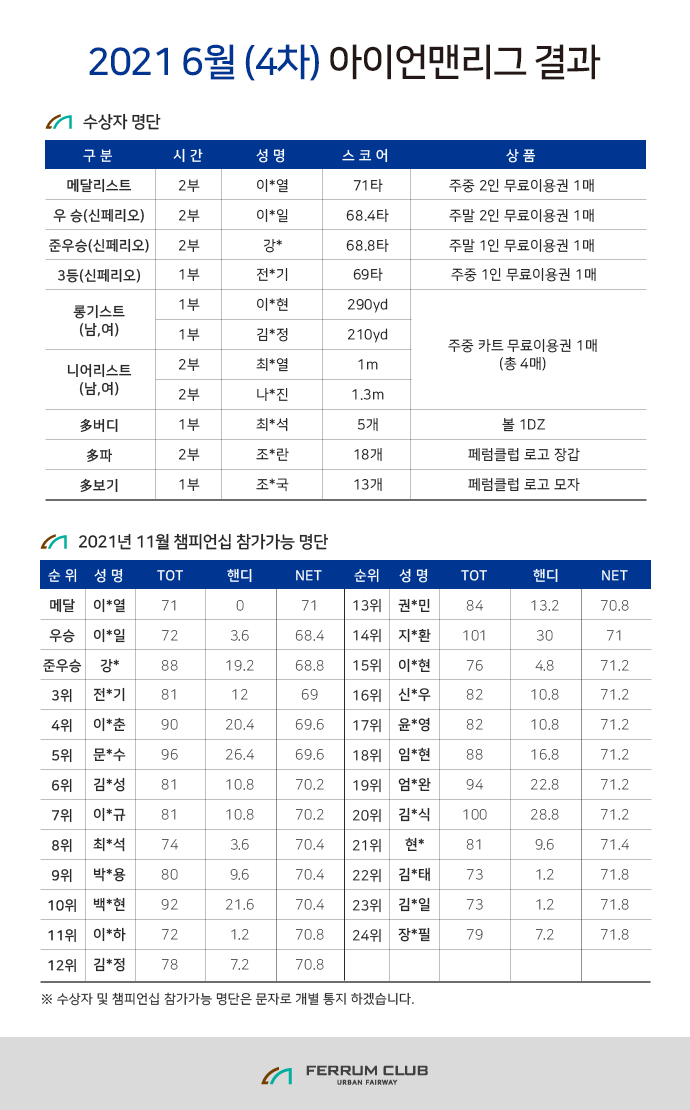 | Á¦ ¸ñ | 2021³â 6¿ù (4Â÷) ¾ÆÀ̾ð¸Ç¸®±× °á°ú | ||