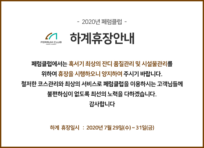 | Á¦ ¸ñ | 2020³â Çϰè ÈÞÀå¾È³» 7/29(¼ö) ~ 7/31(±Ý) 3Àϰ£ | ||