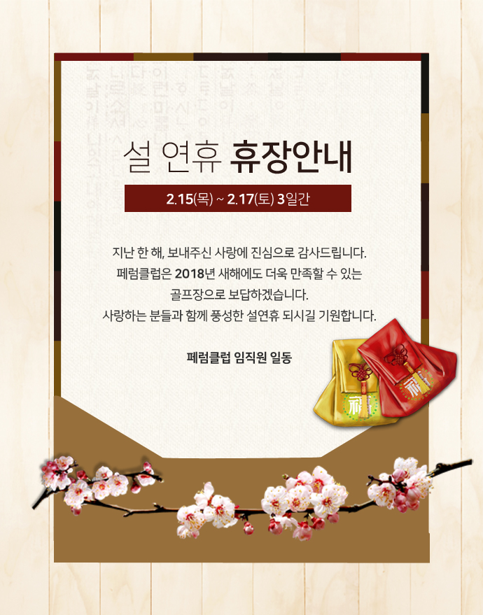 ¼³ ¿¬ÈÞ ÈÞÀå¾È³» 2/15(¸ñ) ~ 2/17(Åä) 3Àϰ£