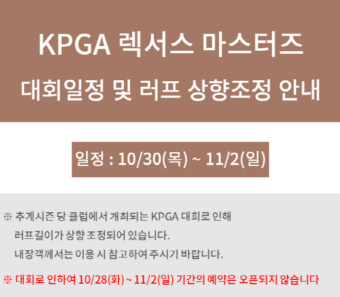 | Á¦ ¸ñ | KPGA 2025 ·º¼½º¸¶½ºÅÍÁî 10.30(¸ñ) ~ 11.2(ÀÏ) | ||