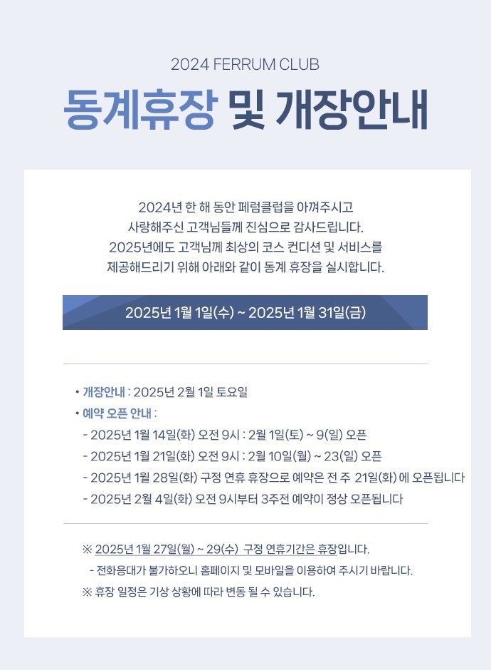 | Á¦ ¸ñ | 2025³â µ¿°èÈÞÀå¾È³» 2025.1.1(¼ö) ~ 2025.1.31(±Ý) | ||