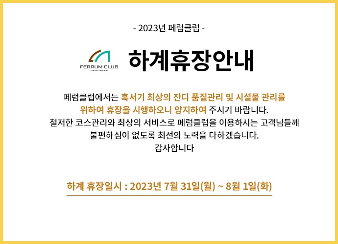 | Á¦ ¸ñ | 2023³â Çϰè ÈÞÀå¾È³» 7/31(¿ù) ~ 8/1(È) 2Àϰ£ | ||