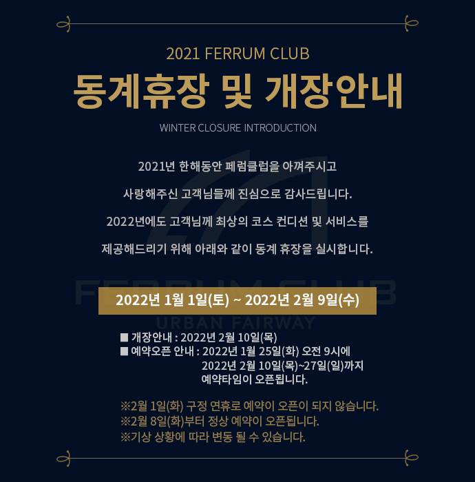 | Á¦ ¸ñ | 2021³â~2022³â µ¿°èÈÞÀå¾È³» 2022.1.1(Åä) ~ 2022.2.9(¼ö) | ||