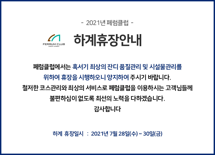 2021³â Çϰè ÈÞÀå¾È³» 7/28(¼ö) ~ 7/30(±Ý) 3Àϰ£